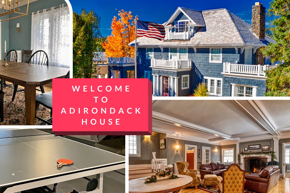 Welcome to your Adirondack getaway! Nestled on a private one-acre lot with stunning views of the Adirondack Mountains, the “Adirondack House” sits directly between Mirror Lake and Lake Placid and is just a stroll away from the shops and restaurants of Lake Placid’s charming Main Street and the Olympic Village. It’s also just minutes away from a host of outdoor activities from skiing to boating and everything in between.